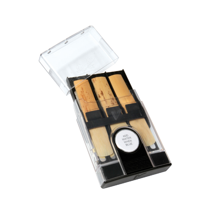 This reed case is designed to maintain your reeds in optimal humidity conditions to avoid any deterioration. It is based on a regulated humidification by air circulation and a hygrometry level controlled by a humidity indicator disc.